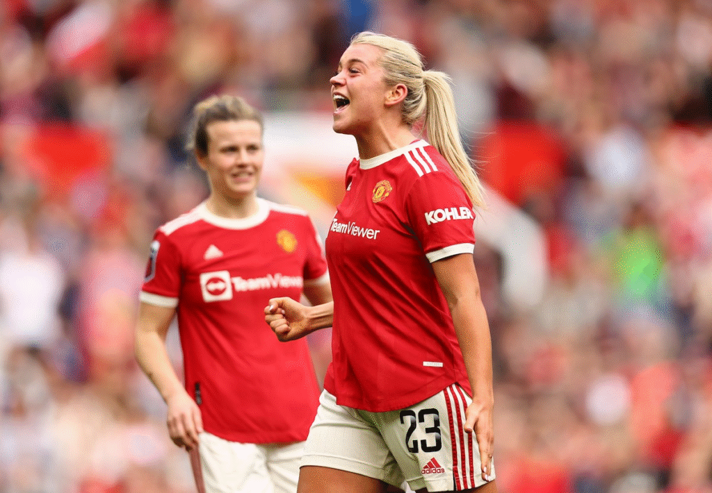 After that, she joined the North Carolina Tar Heels in the USA. There, she scored a total of 28 goals. Just a month after leaving the club, she signed a two-year contract with her dream club, Man United.