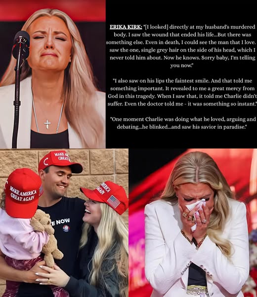 But Erika’s remembrance defied that frame. By describing details no campaign could script — a grey hair, a smile, a whispered message — she shifted the story from politics to humanity. For one night, Charlie was not the partisan warrior. He was a husband, a man at peace, a soul perhaps speaking from beyond.